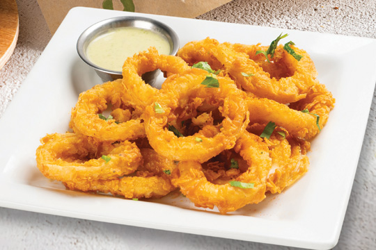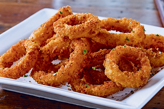 Crispy onion rings dusted with cajun seasoning and sprinkled with cilantro. Served with house-made ranch.