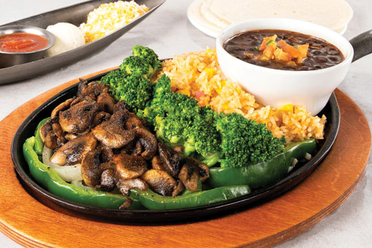 Fresh sautéed mushrooms, sautéed green bell peppers & onions, seasonal rice, black beans & broccoli. Served with flour tortillas, house-made pico, mixed cheese, sour cream, and fresh salsa.