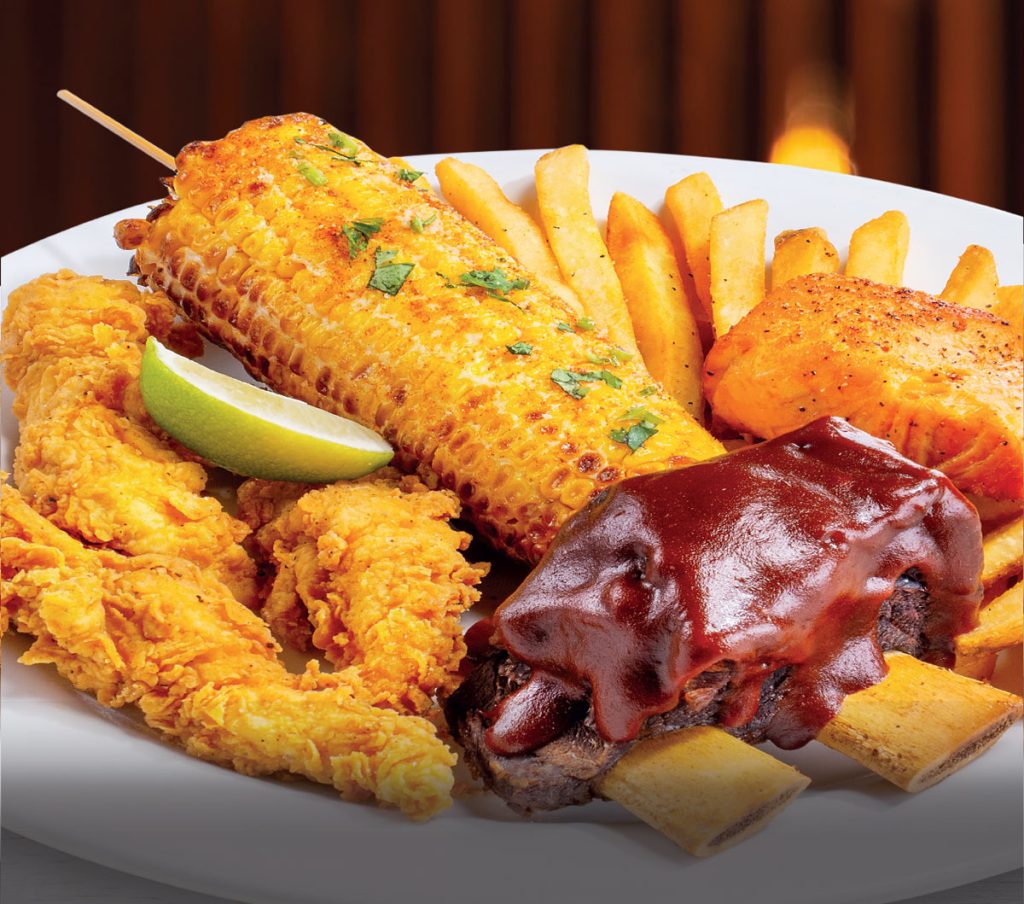 SERVED WITH FRIES AND STREET CORN