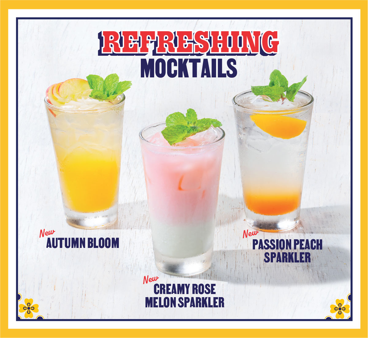 Garnished with peach slice and mint leaves. RM18.50